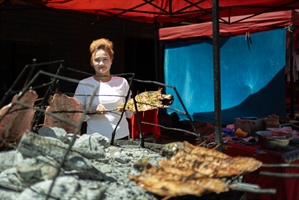 巴扎上的烤魚姐