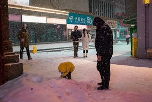 《雪中菜販》