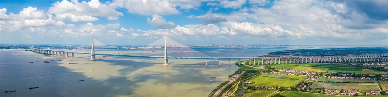 《滬蘇通大橋遙望下的長(zhǎng)江狼山盛景》