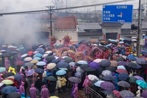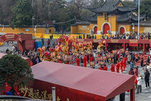 歸元禪寺前的非遺(龍陽高龍)表演