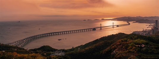 夕陽下的星海灣跨海大橋