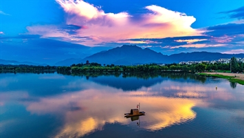 暮色芙蓉湖,一舟枕碧漣
